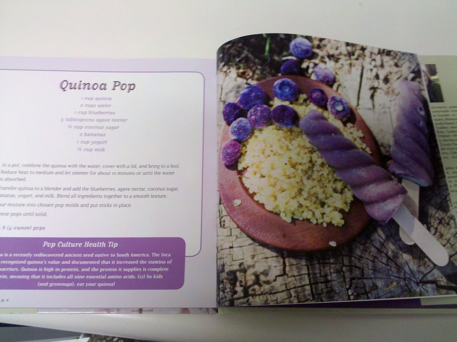 We most recently tried one of the speciality pops that has quinoa in it! I must say, I thought having a protein like quinoa in my pop would be strange but they are super yummy! Even my two year old sprout loves them! (And the purple color from the blueberries doesn't hurt, as she loves everything purple!)
